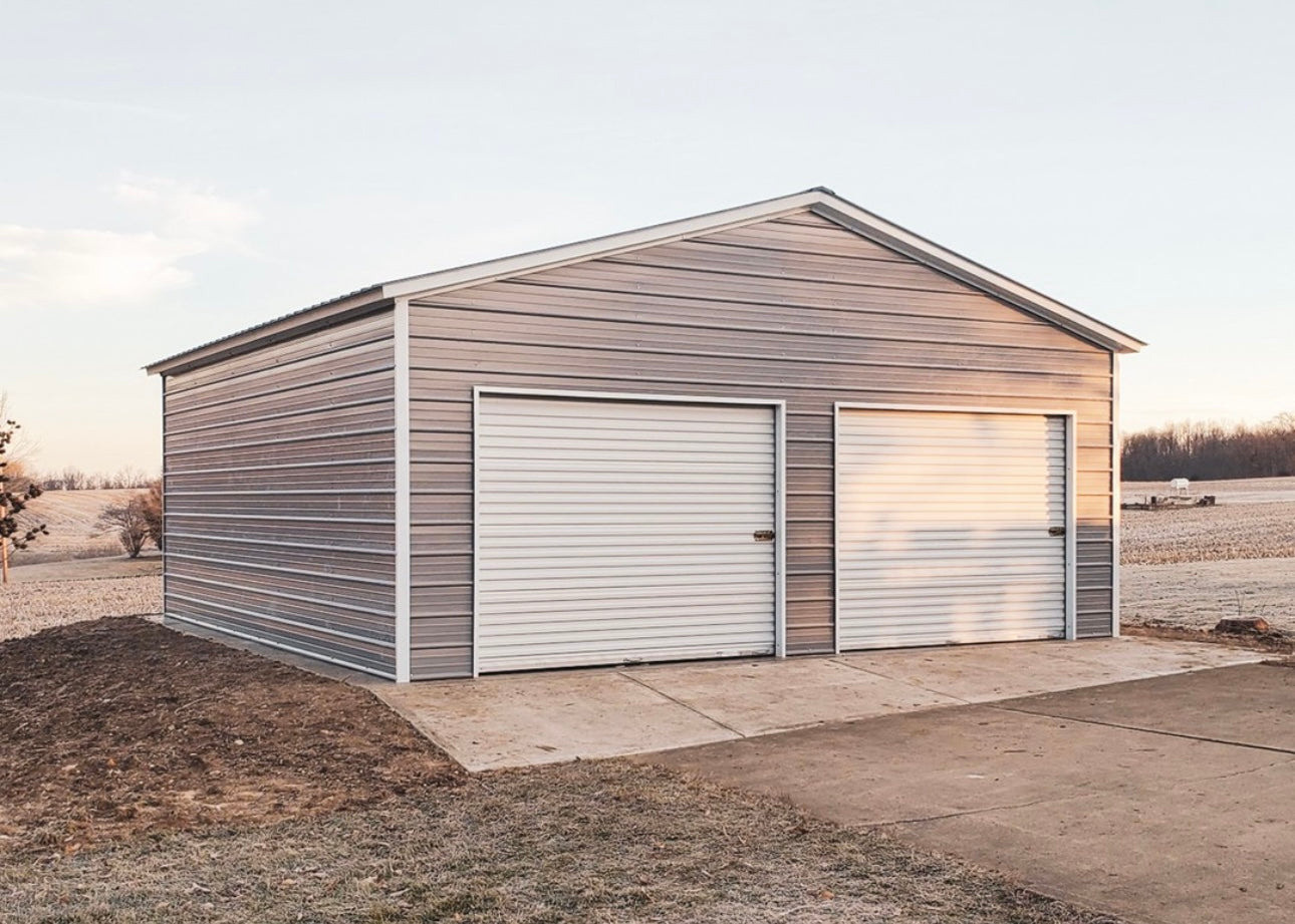 A-Frame Vertical Roof | (2 Qty) Horizontal Sides Enclosed | (2 Qty) Horizontal Ends Enclosed | (2 Qty) 9' x 7' Rollup Doors