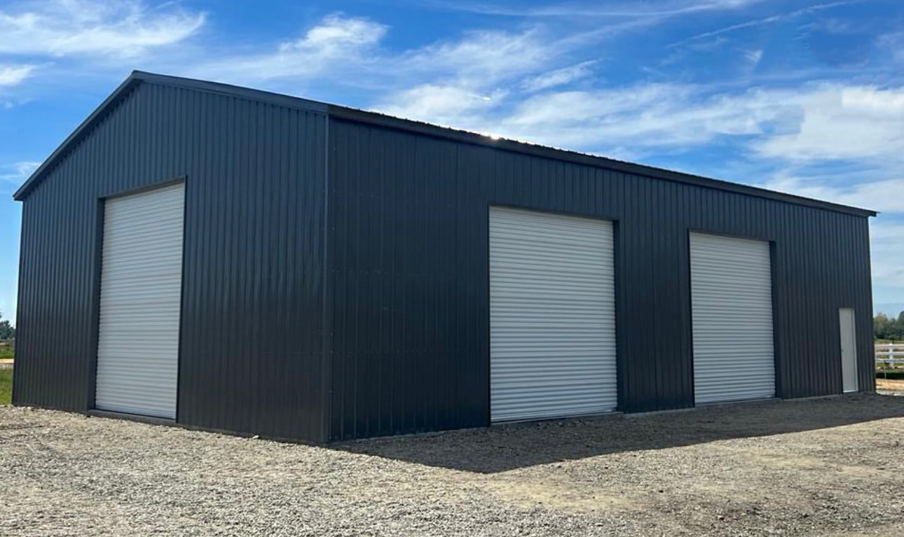 A-Frame Vertical Roof | (2 Qty) Vertical Sides Enclosed | (2 Qty) Vertical Ends Enclosed | (1 Qty) 12' x 14' Rollup Door | (2 Qty) 10' x 12' Rollup Doors | (2 Qty) 10' Side Header Bars | (1 Qty) 36" x 80" Man Door